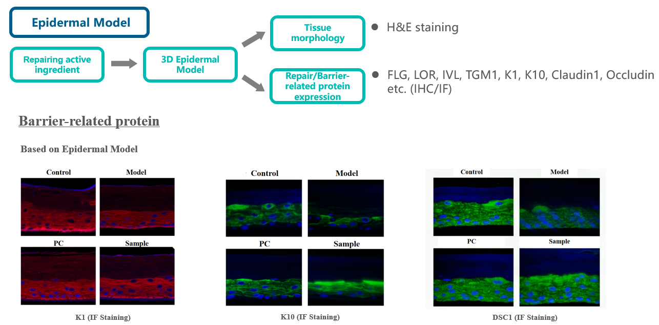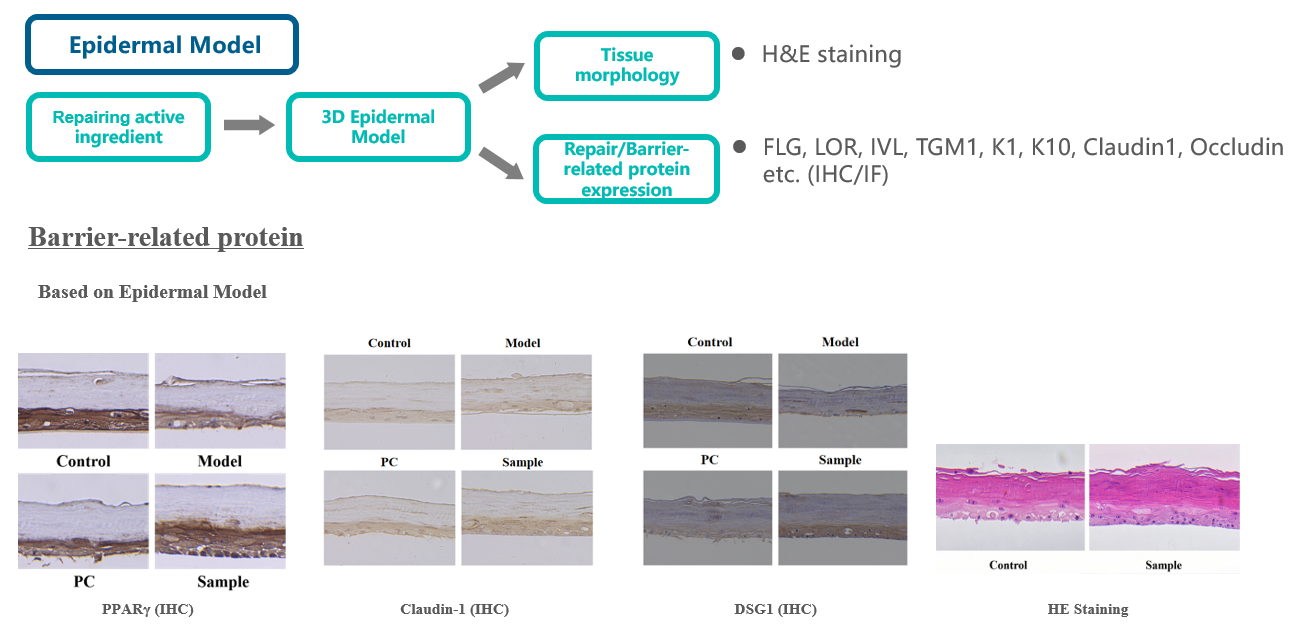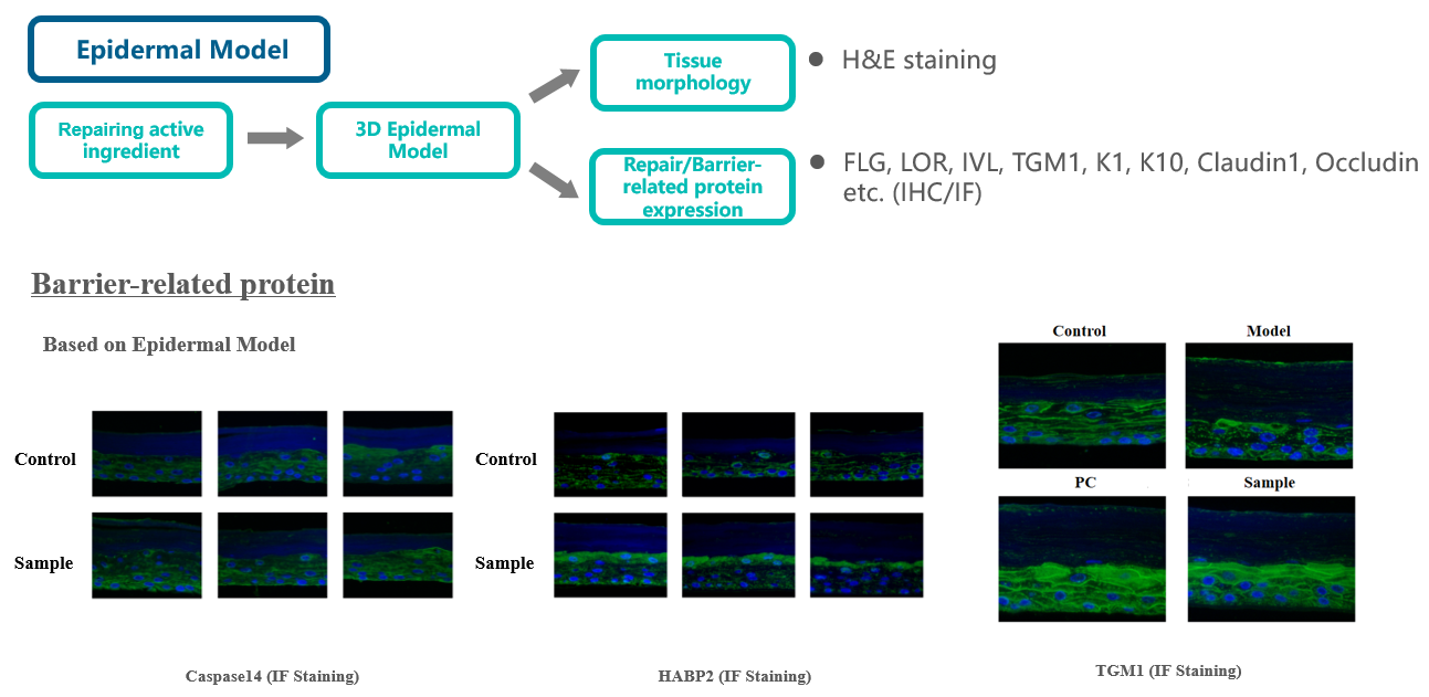 3D skin damage model | Expression of barrier-related genes (AQP3, FLG, Caspase-14 , Claudin-1, occludin) |