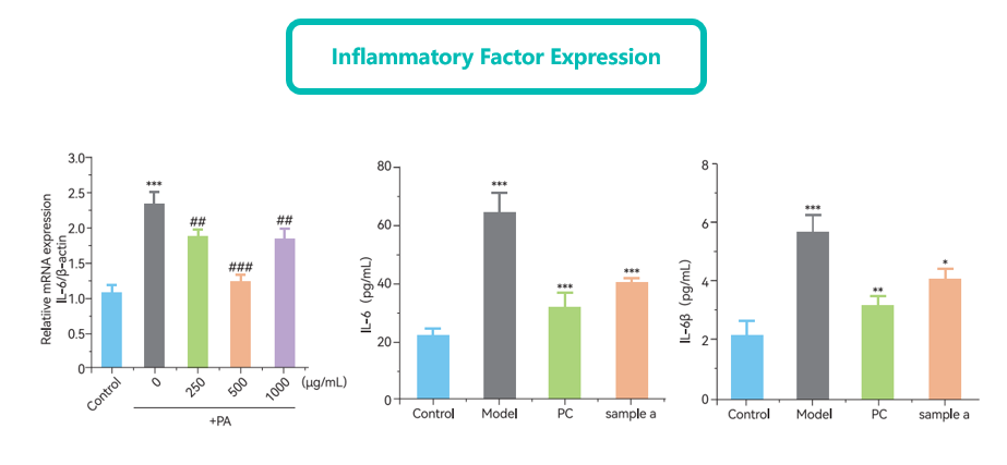 LPS stimulated inflammation model in HaCaT cells | Measurement of inflammatory factors (IL-6, IL-8, TNF-α, IL- 1β, etc.) | |